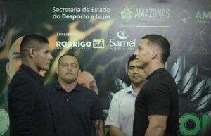 Quase oito anos após José Aldo perder o título dos pesos penas (até 65,7kg.), o Brasil tem a chance de reaver o cinturão mais simbólico do UFC. Neste sábado (12), Diego Lopes, amazonense de 30 anos radicado no México, enfrenta o ex-campeão Alexander Volkanovski na luta principal do UFC 314, em Miami, pelo título vago da categoria. Diego Lopes é oriundo do bairro do Mutirão, entre as zonas Leste e Norte de Manaus, e foi revelado pela Clube Freitas, projeto social de jiu-jítsu da referida comunidade.