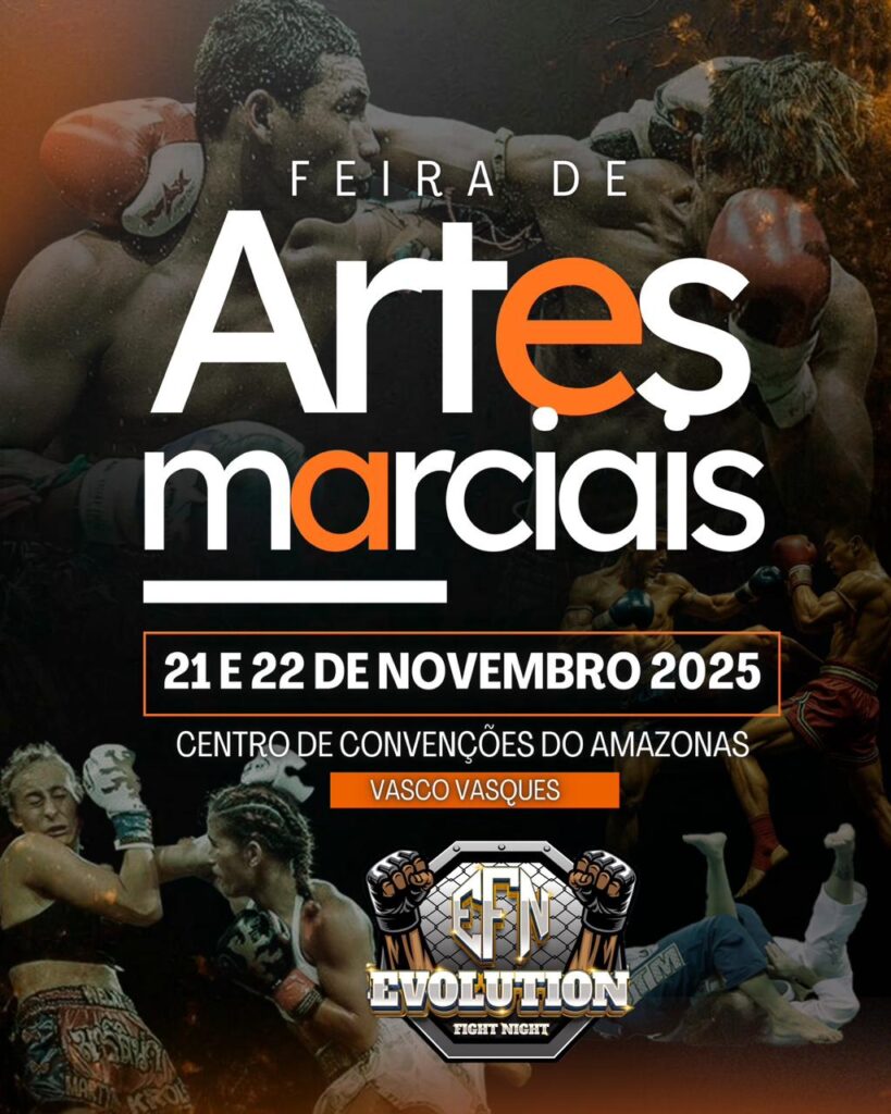 Manaus se prepara para viver o maior encontro marcial da Região Norte. Nos dias 21 e 22 de novembro, a partir das 9h, o Centro de Convenções Vasco Vasques recebe a Feira de Artes Marciais 2025, evento aberto ao público e dedicado a atletas, professores, famílias, estudantes, projetos sociais e todos os amantes do universo das lutas.